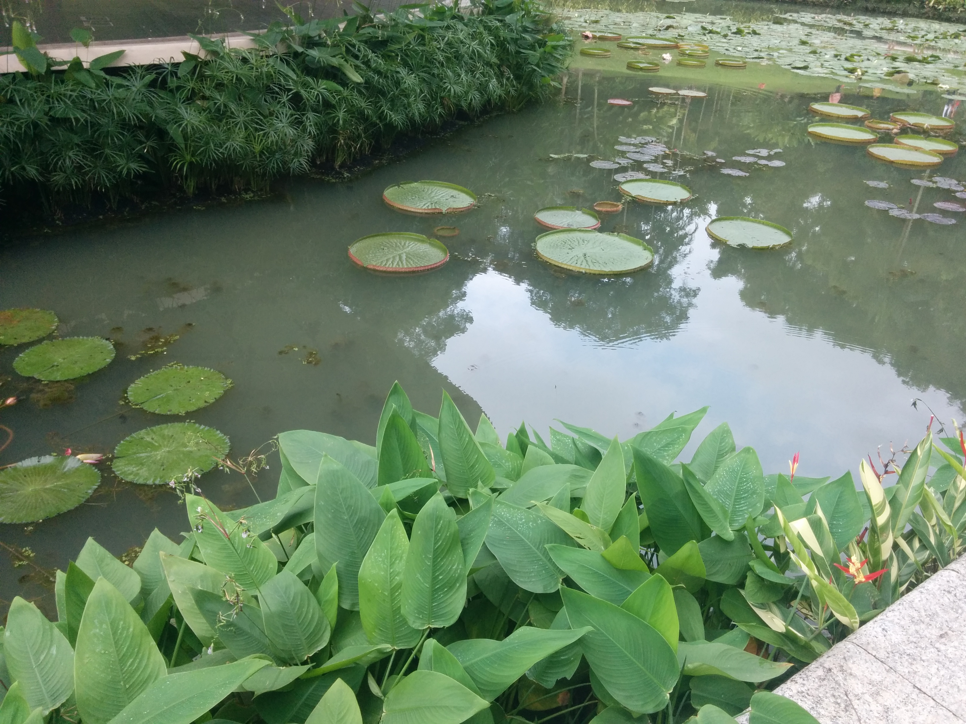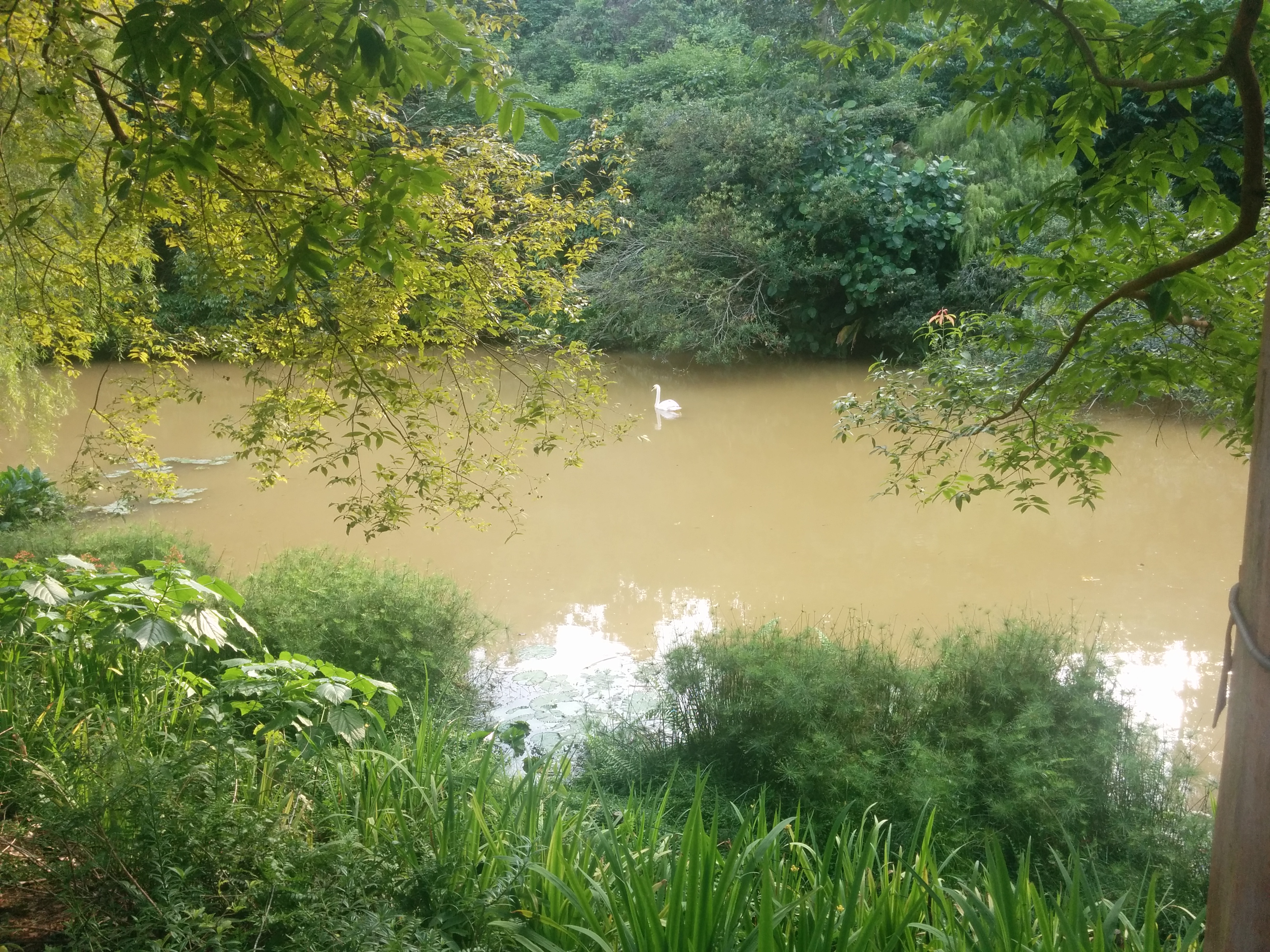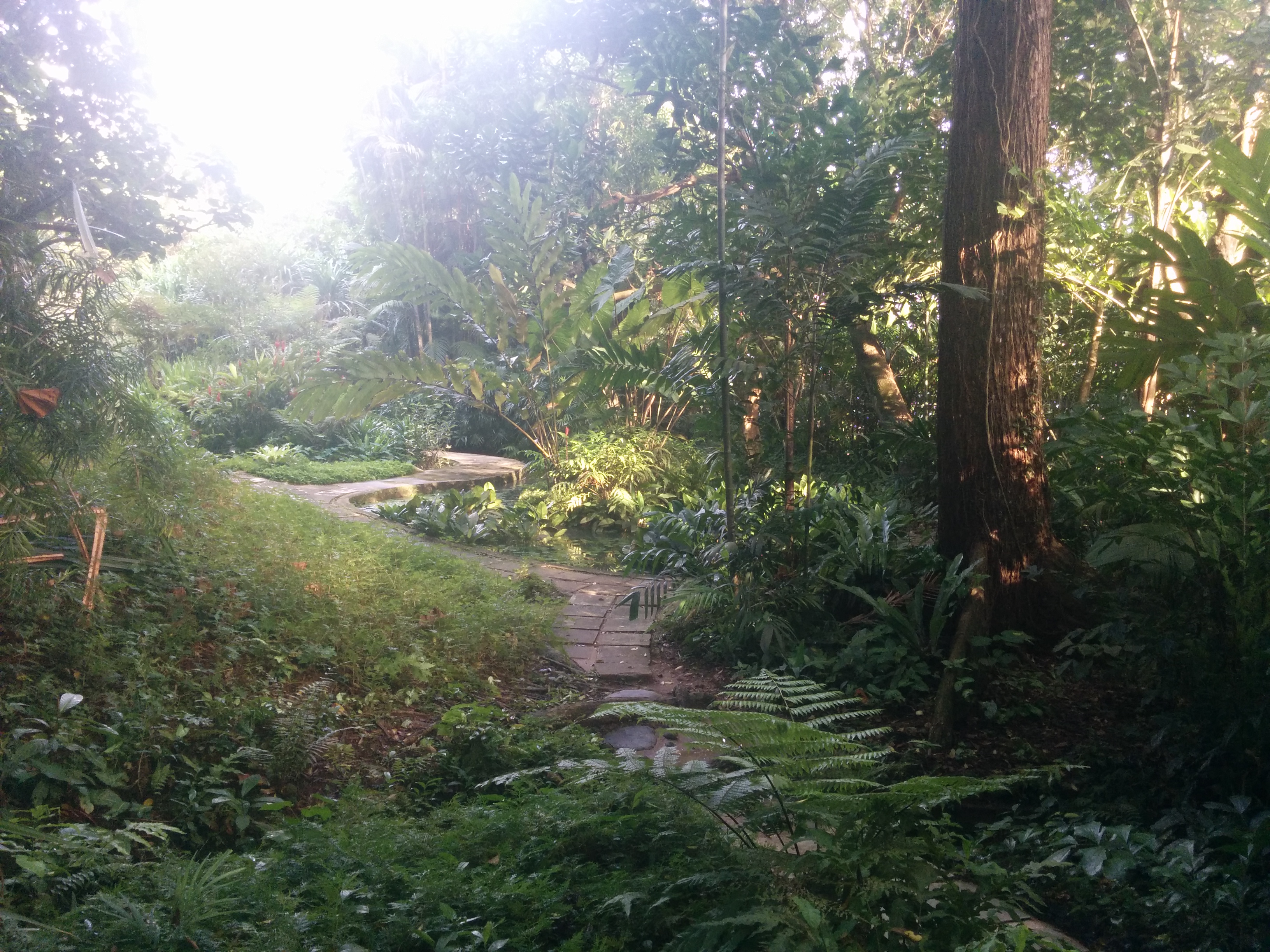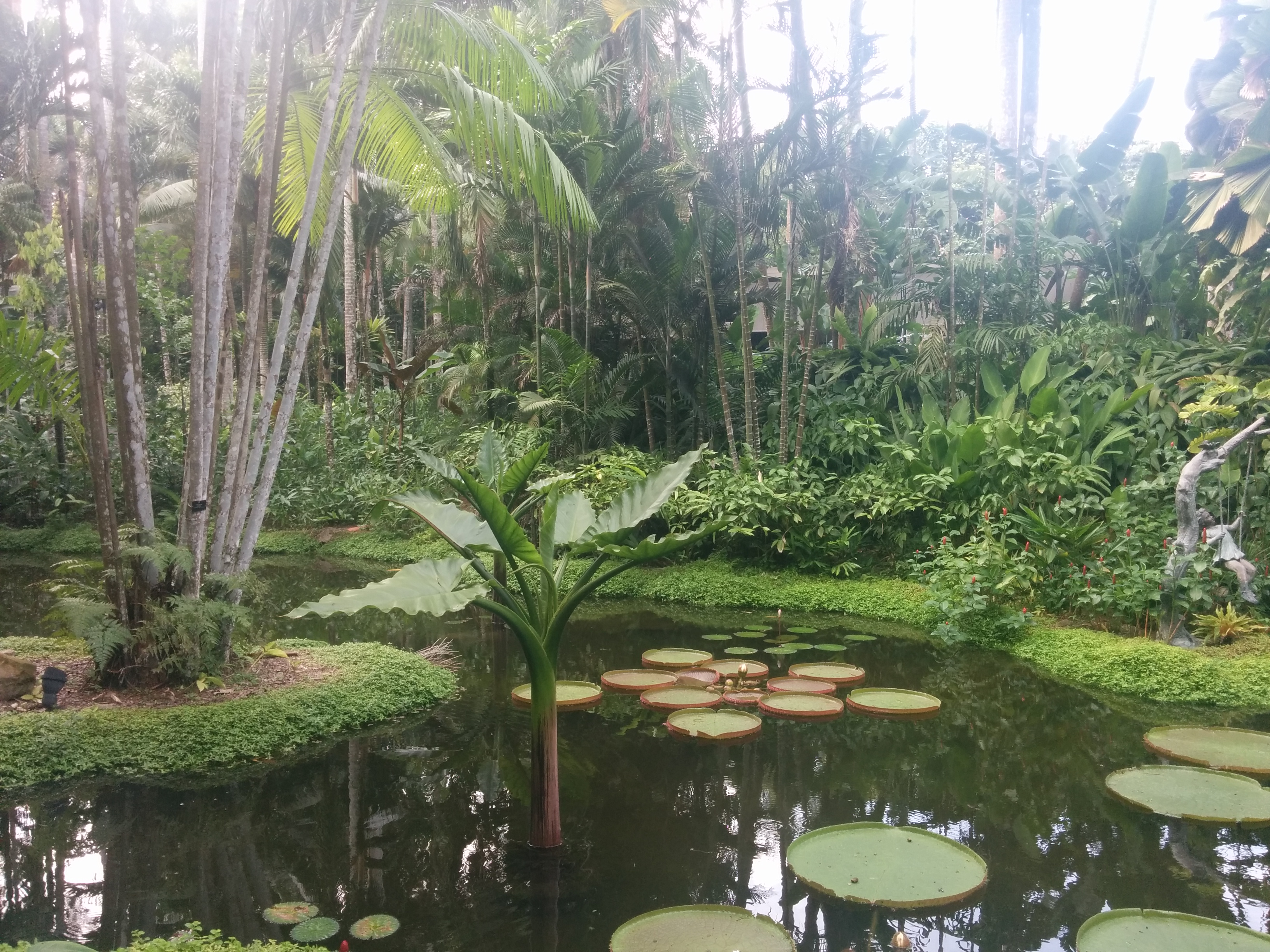 Szóval ma elmentem a botanikus kertekhez. Kicsit csepergett még ott is az eső, és legutóbb azt mondták, hogy egy óra az egész. Hát több volt. Teljesen elfáradtam a végére, igaz el is tévedtem egyszer. Pont a legrosszabb helyen. Kicsivel az után, hogy indultam, volt egy kis ösvény, amin gondoltam, hogy szétnézek, de csak mocsaras vidék volt, meg az útra nőtt növények, meg akkora pókok, mint az öklöm kétszer, úgyhogy alig vártam, hogy kiszabaduljak. Aztán egy órával később azt vettem észre, hogy valami ismerős helyen vagyok. És pont oda lyukadtam ki, csak a másik oldalról. Na mindegy, amúgy jó volt, csak kicsit látszott rajta, hogy mesterséges, főleg a korábbi esőerdőkhöz képest. Nézzétek csak a képeket, vannak rajta madárkák, meg hattyú, meg kiskacsa, meg mókusok meg gyíkok, teknősök, és valami vizi szörny is. Meg persze növények 🙂