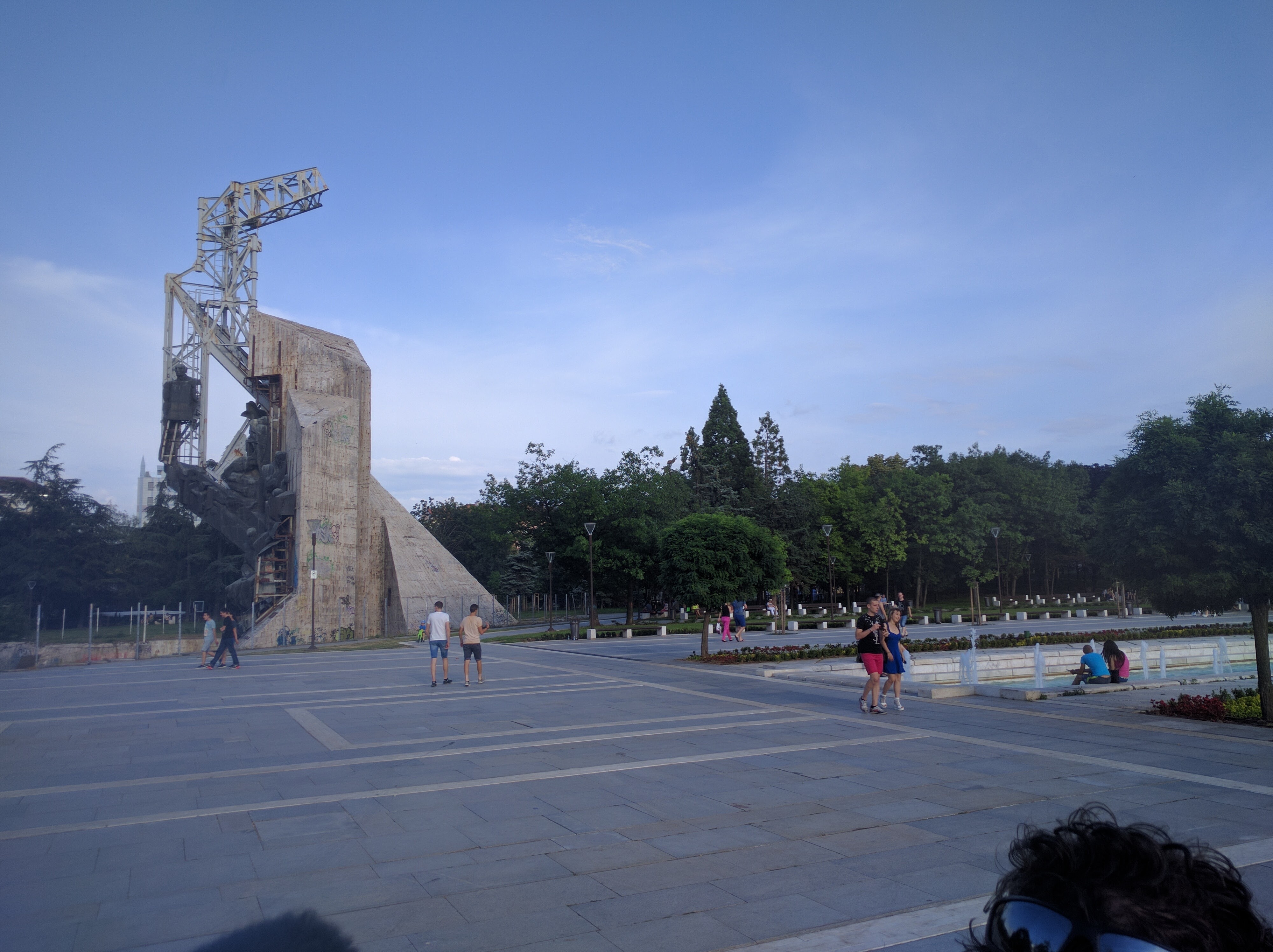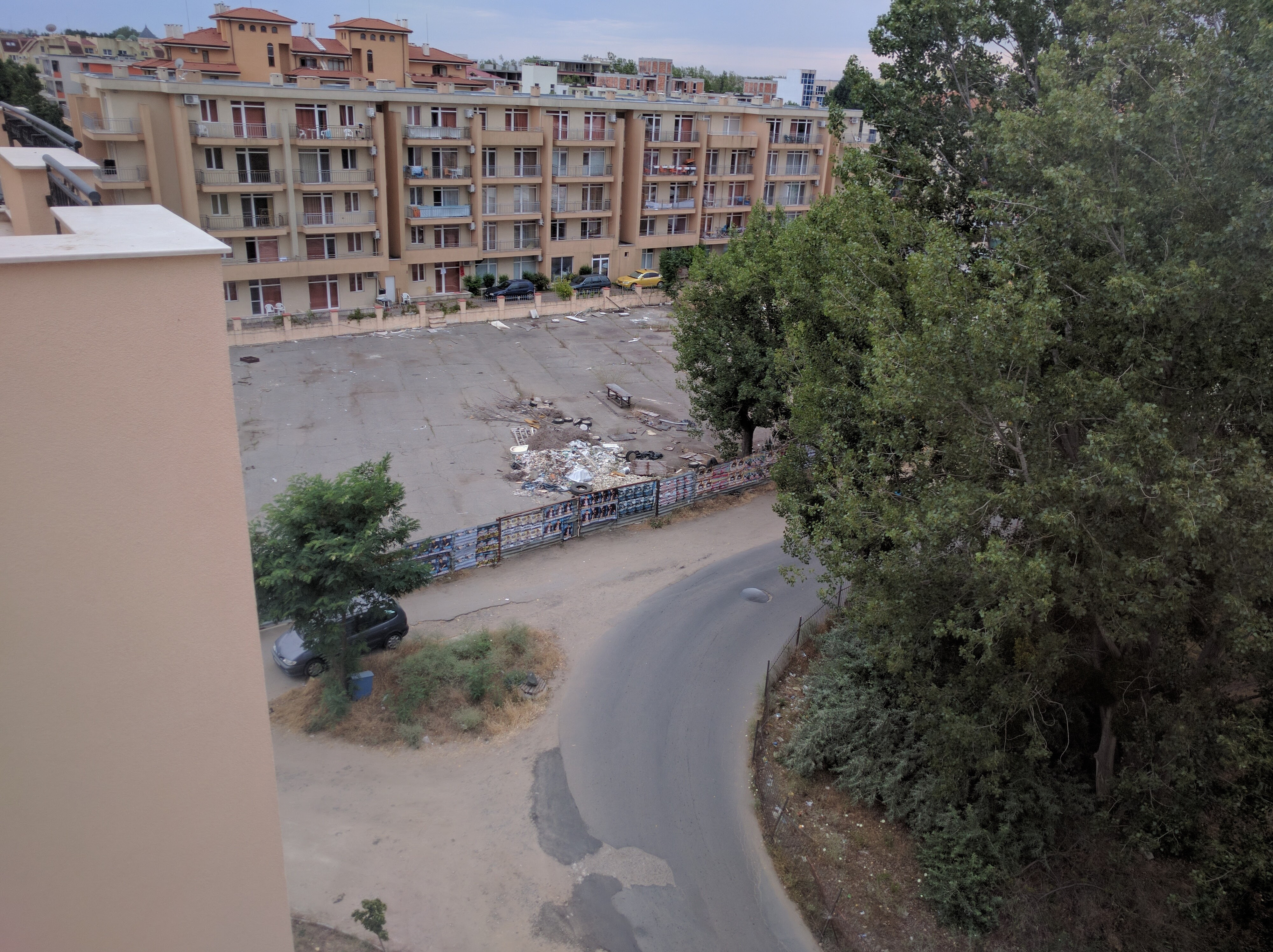 A Szerb határig aludtam. Ott kb 20 percet kellett várakoznunk a sorban, de végül mindenféle motozás nélkül átkeltünk. Azt hiszem korábban még nem voltam Szerbiában, csak átutazóban, úgyhogy most még ez is nagy élmény volt számomra. Először az tűnt fel, hogy az út, amit autópályának hívnak, valójában inkább egy hullámvasút, mert úgy ugrált rajta a kocsi, hogy vissza sem tudtam aludni. Aztán, ha már úgyis fent voltam, elkezdtem nézelődni, és nem is tudtam hírtelen hova kapjam a fejem. Ladák krosszoztak körülöttünk, a pálya mellett lovaskocsival utazott egy család, volt egy faszi, aki gyalog sétált az autópályán, de nem jöttünk rá, hogy honnan, mert autó nem volt közel-távol. Meg ami nagyon érdekes volt, az a rengeteg félkész híd, oszlopok, útszakaszok, mindenfelé. A semmi közepén ott volt megépítve 40 méter út. Vagy a pálya felett átívelt egy felüljáró, de egyik oldalán sem ért le egészen a földig. Meg sok helyen csak az oszlopok ágaskodtak, mindenféle körítés nélkül. De a kezdeti érdeklődésemet egy idő után már nem tudta kielégíteni pár kilóméterenként 1-2 oszlop, így gyorsan rájöttem, hogy igazából azokon kívül semmi nincs ott. Tudom, hogy a magyar autópályák sem valami izgalmasak, de itt végképp nem volt semmi. Jobbra fű, balra fű, nagyon ritkán 1-1 falu, de még ott is minden tök egyforma. Teljesen a monopolyban éreztem magamat. Voltak a kis házak, abból egy csomó, meg néhány nagy ház, de ezek is egyformák. Aztán 2 órával a határátlépés után már jöttek kis dimbek-dombok, meg alagutak, (de néha azokat sem értettük) ott egészen szép volt. Amikor pedig lehetett látni 1-1 várost a völgyekben, mindig az jutott eszembe, hogy ezek pont azok a helyszínek, ahol, ha többé nem süt már a nap, játszódni fog az AI, a Johnny Mnemonic, a Szárnyas fejvadász, vagy akármelyik hasonló hangulatú sötét, beton és vas központú, nyirkos, olajos scifi. Nem mintha a magyar panelok bármivel szebbek lennének. Azok mind egyforma nagy kockák. Abszolút megvan a romantikája ezeknek a különböző méretű és formájú változatos paneloknak, és a beton dzsungelnek, amit alkotnak.