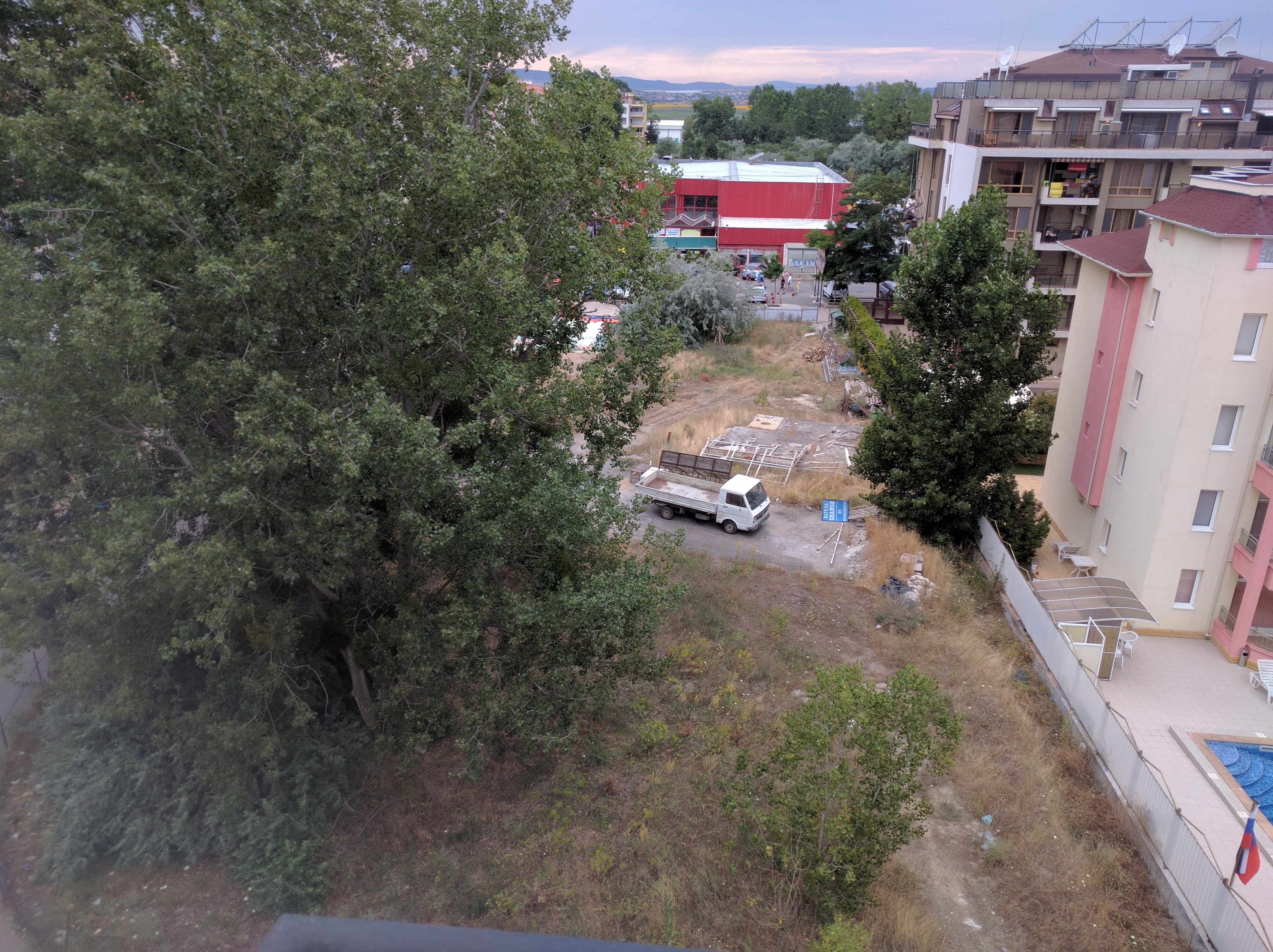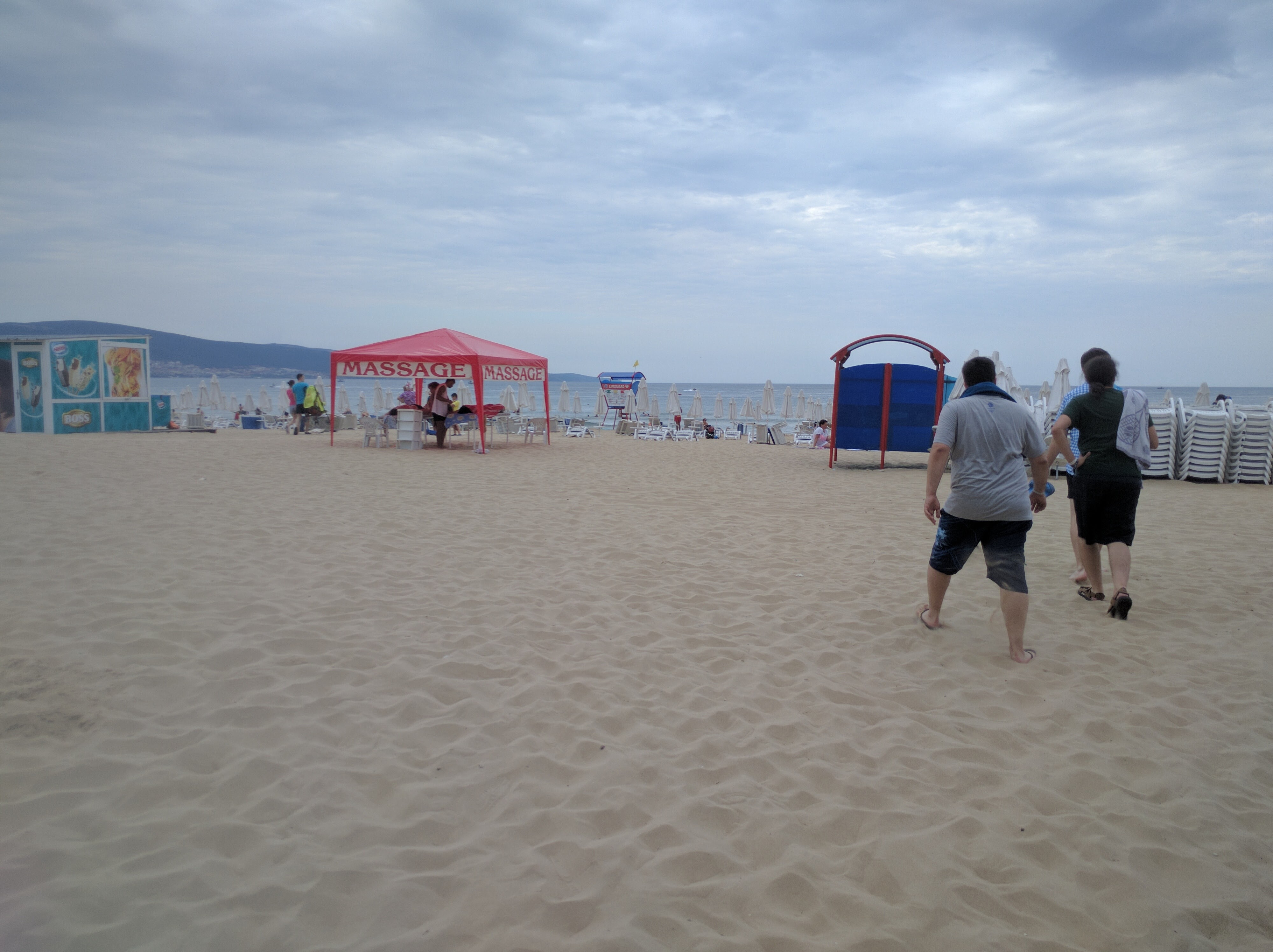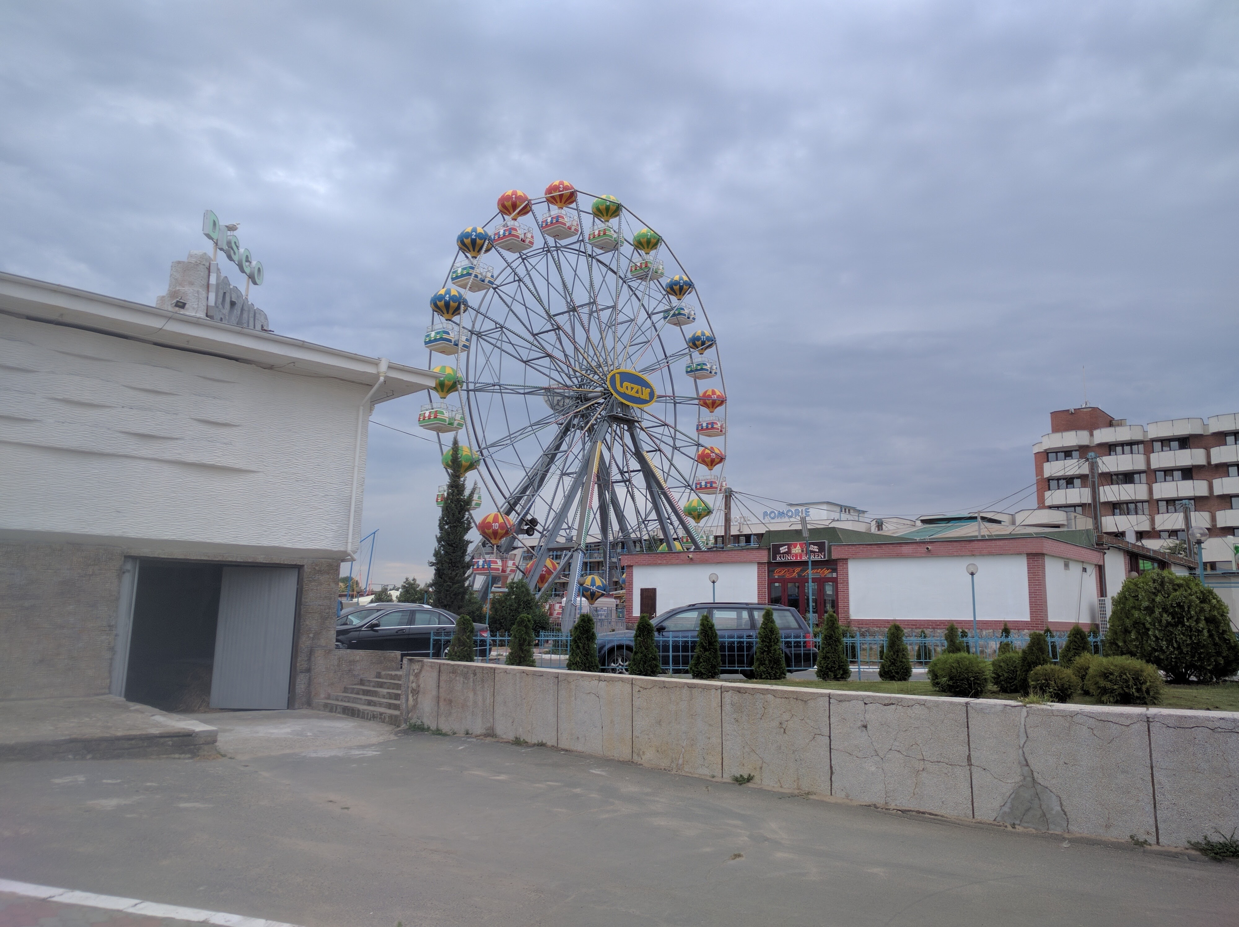 Jó másfél kilóméteres séta, így láttunk egy darabot a városból. Nagy szögletes vas és beton épületek jellemzőek, azok is omlanak, meg tele vannak 20 évvel ez előtti stílusú színes reklámokkal. Az épületek között vagy még több beton, vagy gaz van. A zebra festése csak két oldalt van jelölve, de gyakran nincs is, ilyenkor egyszerűen át kell szaladni az autók előtt. Ha van lámpa, akkor az nem a helyén. Például a túloldalon, középen, az úttesten egy oszlopon, és nem is pontosan tudom mit jelent, talán azt, hogy mindenki mehet, aki arra a lámpára rálát. Egyébként ijesztően kevesen voltak a városban, ahhoz képest mennyire beharangozták, hogy ez a hely a keleti ibiza, inkább tűnt posztapokaliptikus szocialista üdülőváros maradványainak. Így képzelem el Pripjatyt, ha újra emberek szállingóznának oda. Jah, és minden gyanúsan szex központú. Az egy négyzetméterre eső sex shopok, sztriptíz bárok és viagra árusok száma messze a legmagasabb, amit valaha láttam.