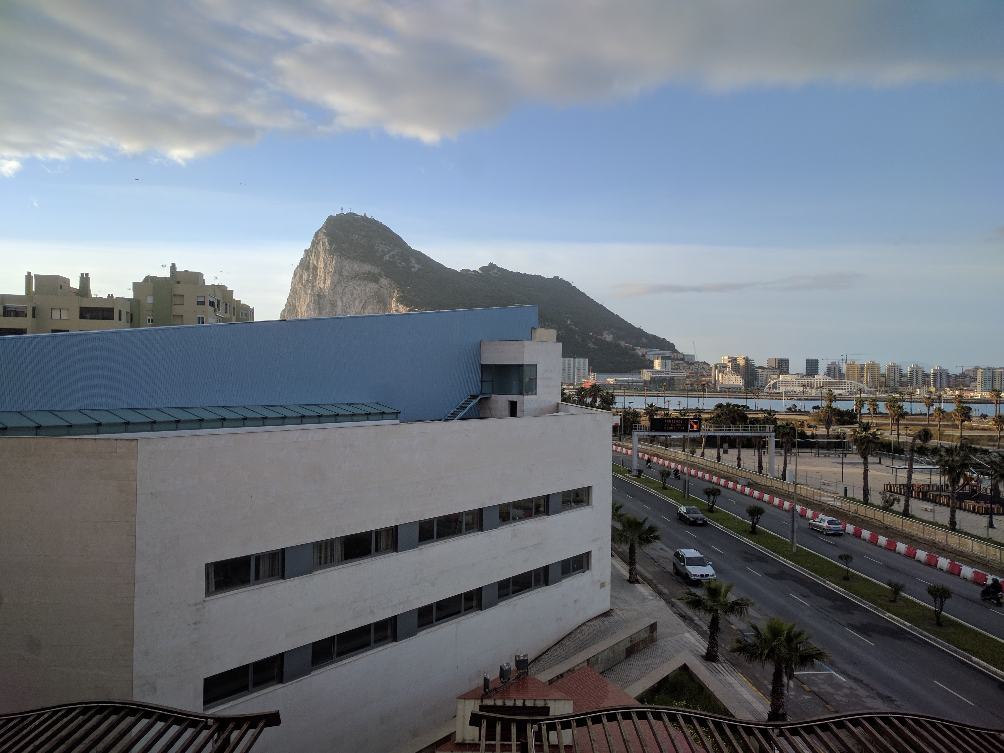 Gyors visszaváltás, hétfő reggel, végre, először világosban. Amint elhúztuk a függönyt, Gibraltár sziklái meredtek ránk a terasz ablakából.
