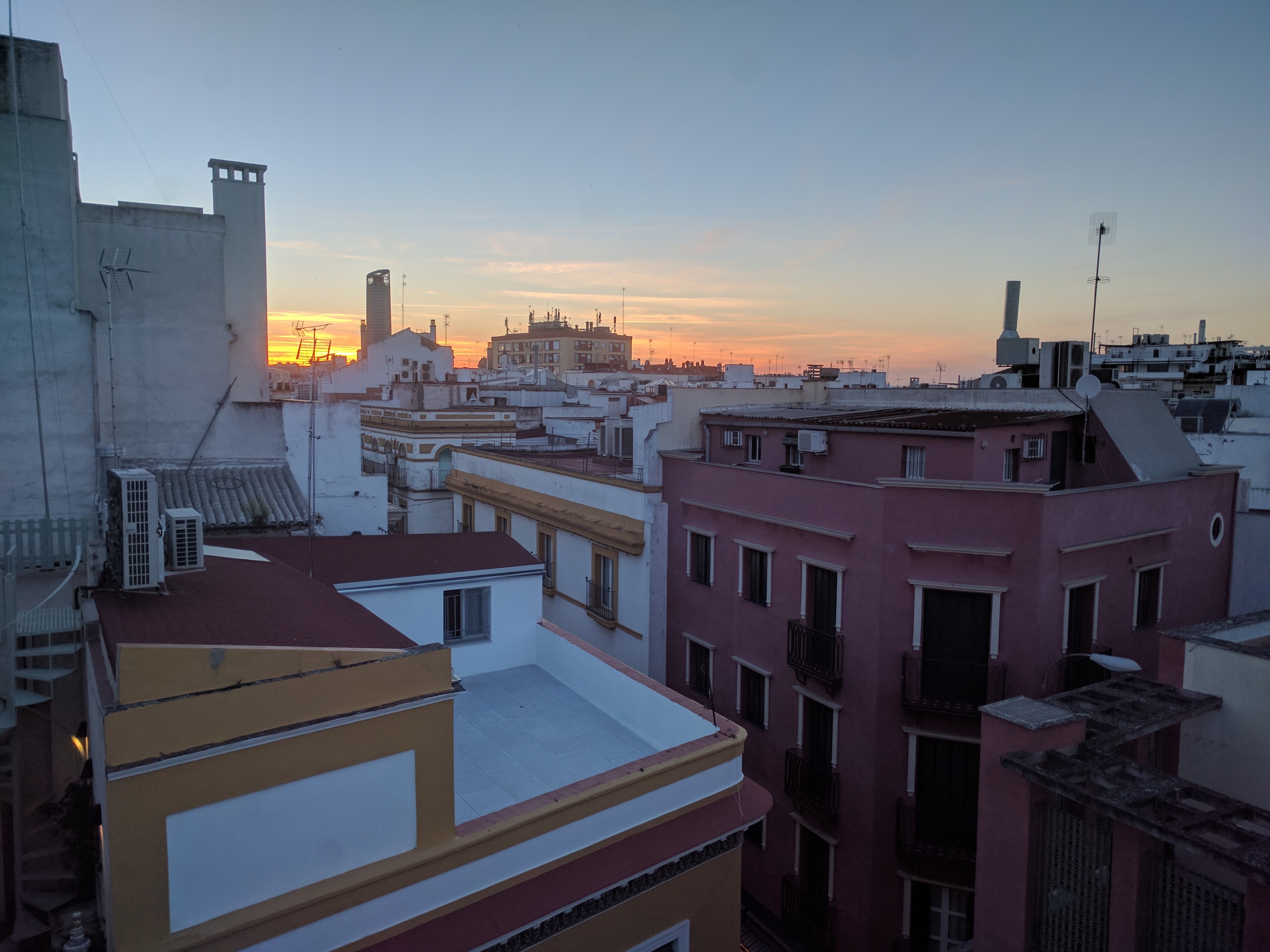 Szerda reggel van, épp Sevillában vagyunk. Tegnap este, hulla fáradtan érkeztünk, mivel egész nap Rondában mászkáltunk. Sajnos itt szörnyen lassú az internet, csak reggelre sikerült feltölteni az új képeket, továbbá, mivel túl szép a város ahhoz, hogy erre várjak, most kis teaserként ideteszem a szállásunk képeit, aztán megindulok. A többivel majd később.