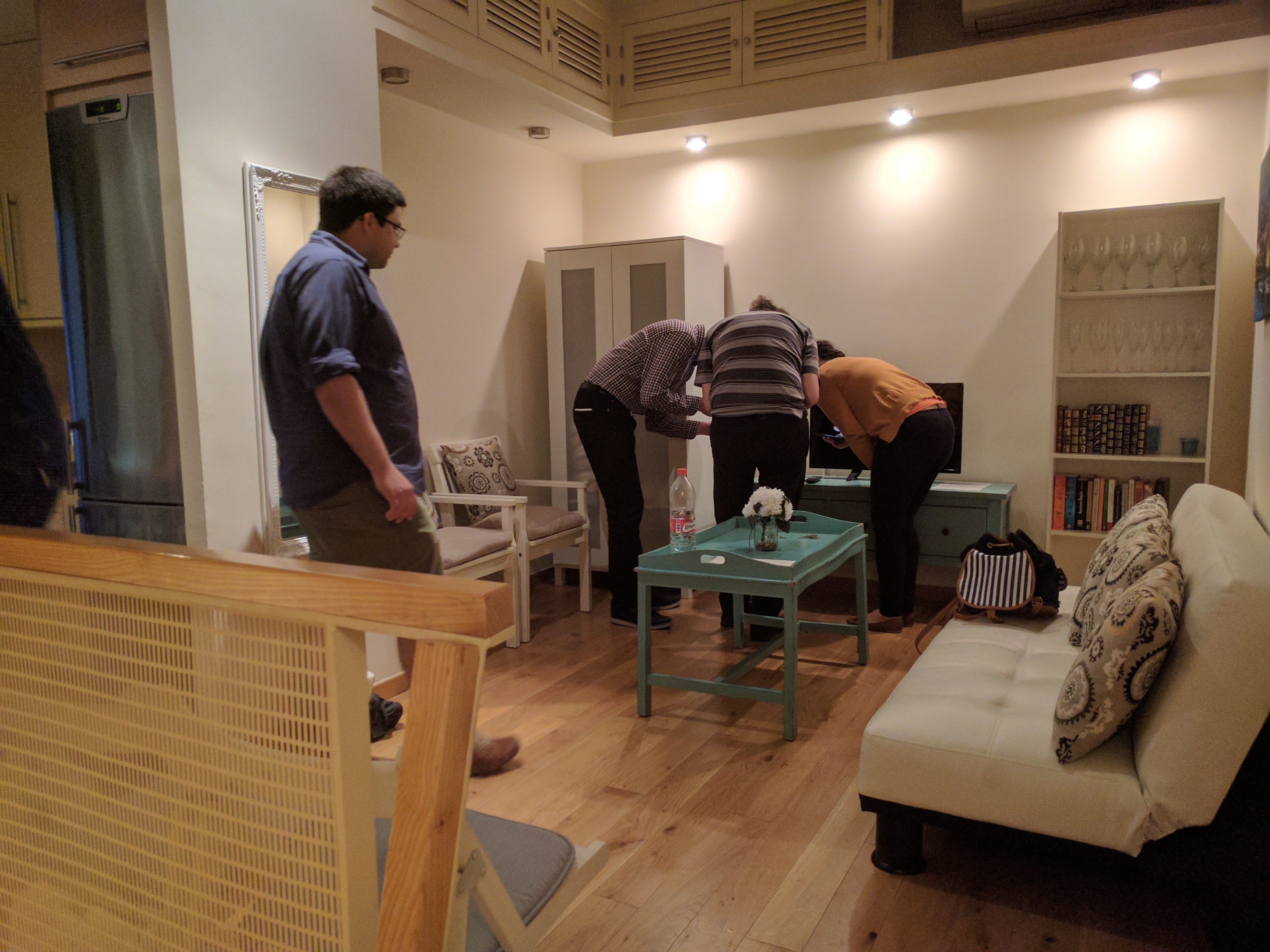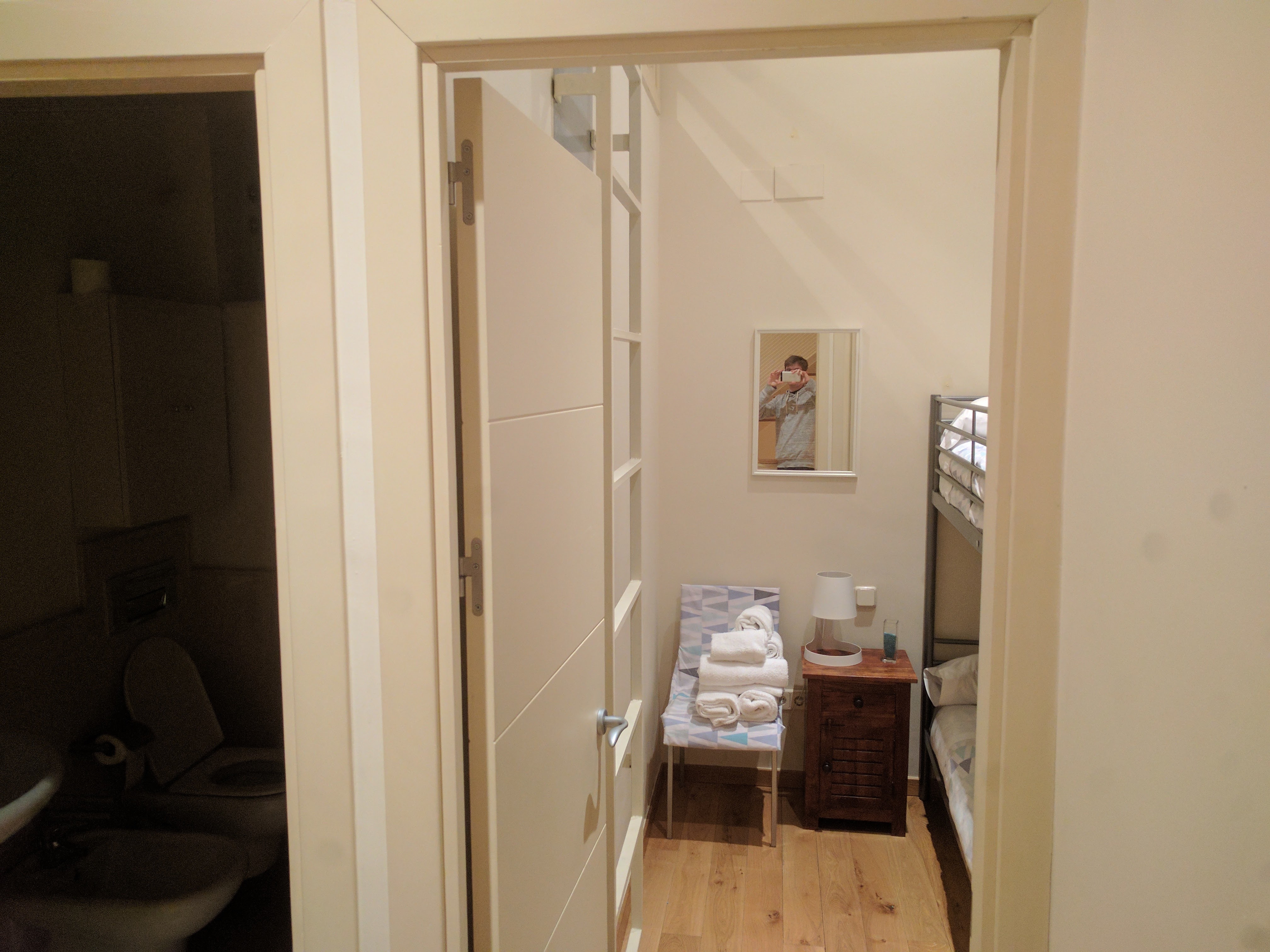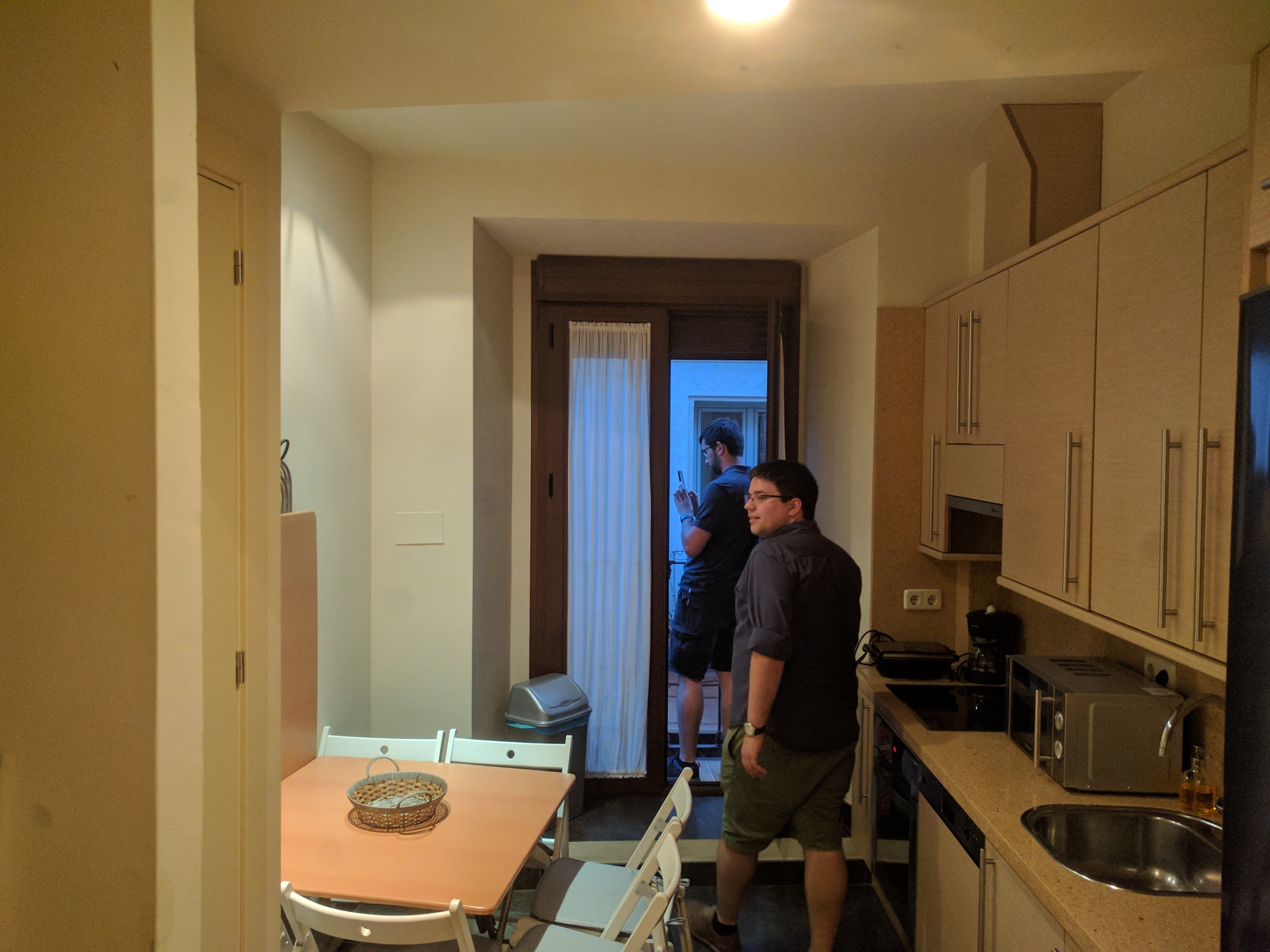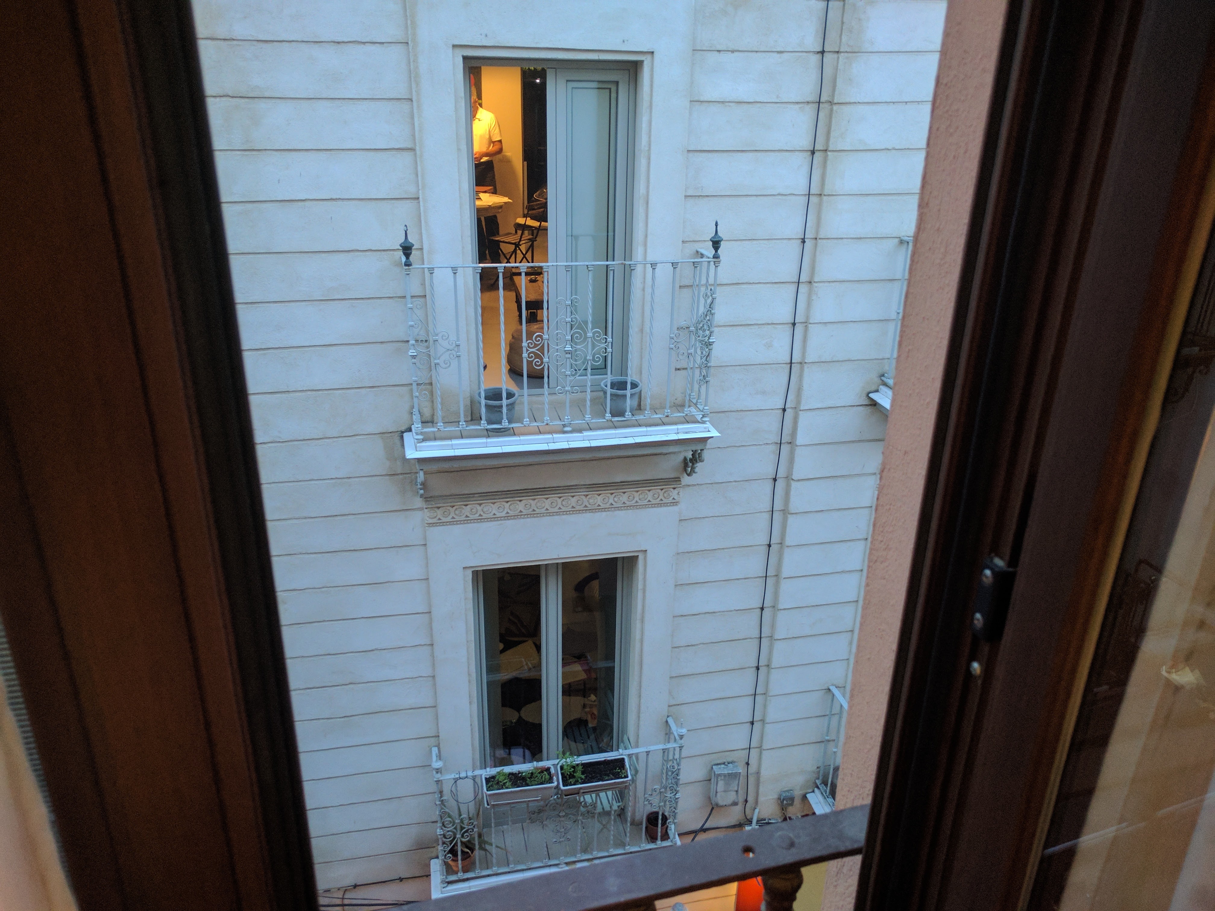A helyszín abszolút belváros, budapesti hasonlattal, kb a Dob utcát képzeljétek el. Két étterem között egy kis ajtón kell bemenni, és az egész apartman a miénk. Az első szint a konyha, nappali, kis erkéllyel. A következő két háló és egy fürdő, francia erkéllyel. Legfelül még egy háló, még egy fürdő, egy nagy terasz. A teraszról pedig egy csigalépső vezet fel a tetőre, ahol asztal, székek, grill, jacuzzi…