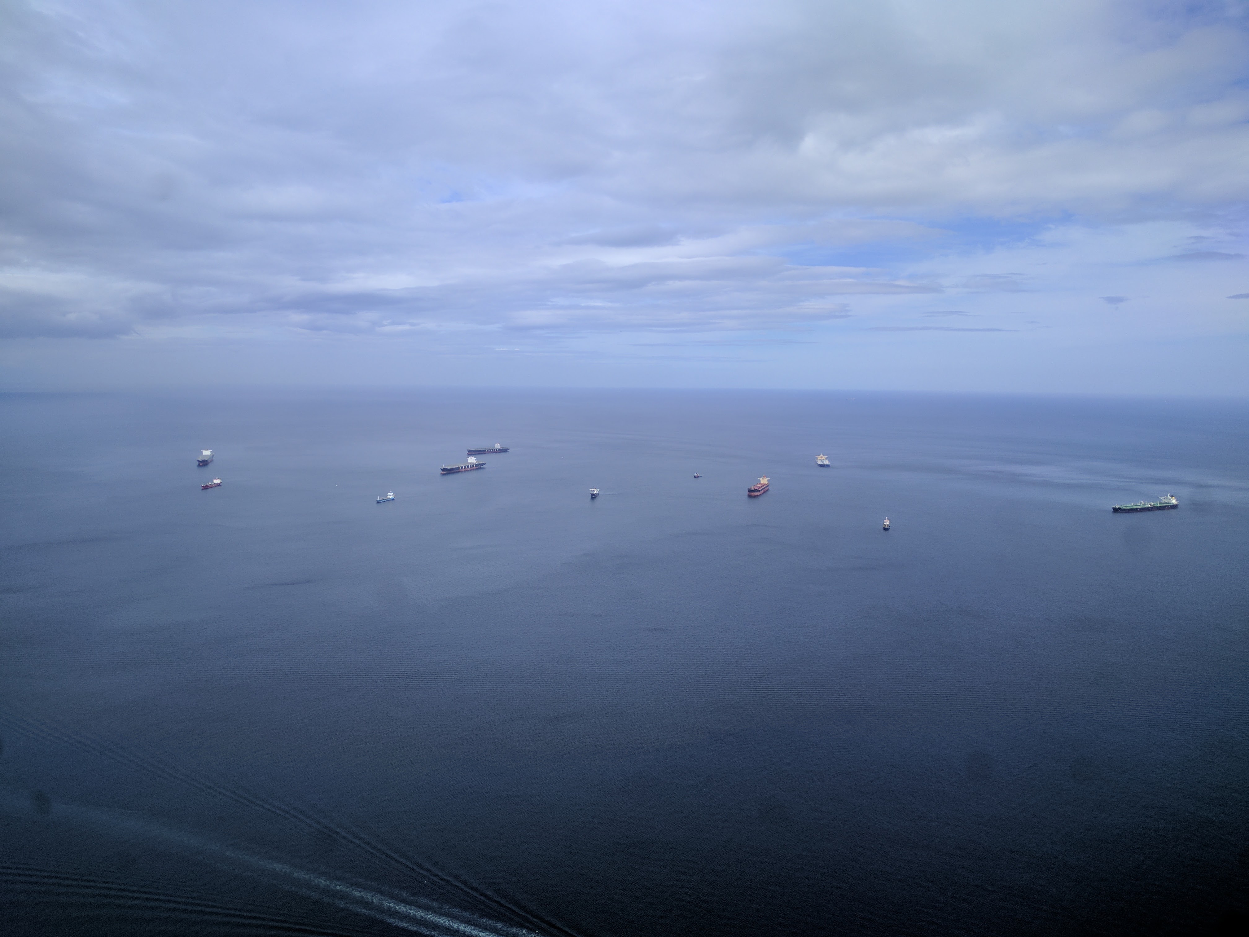 A háttérben a Hanjin flottájának néhány konténer szállító hajója vesztegel, természetesen üresen. A cég onnan lehet ismerős, hogy dél korea legnagyobb ilyen jellegű vállalata volt, és idén februárban (tehát múlt hónapban) ment csődbe.