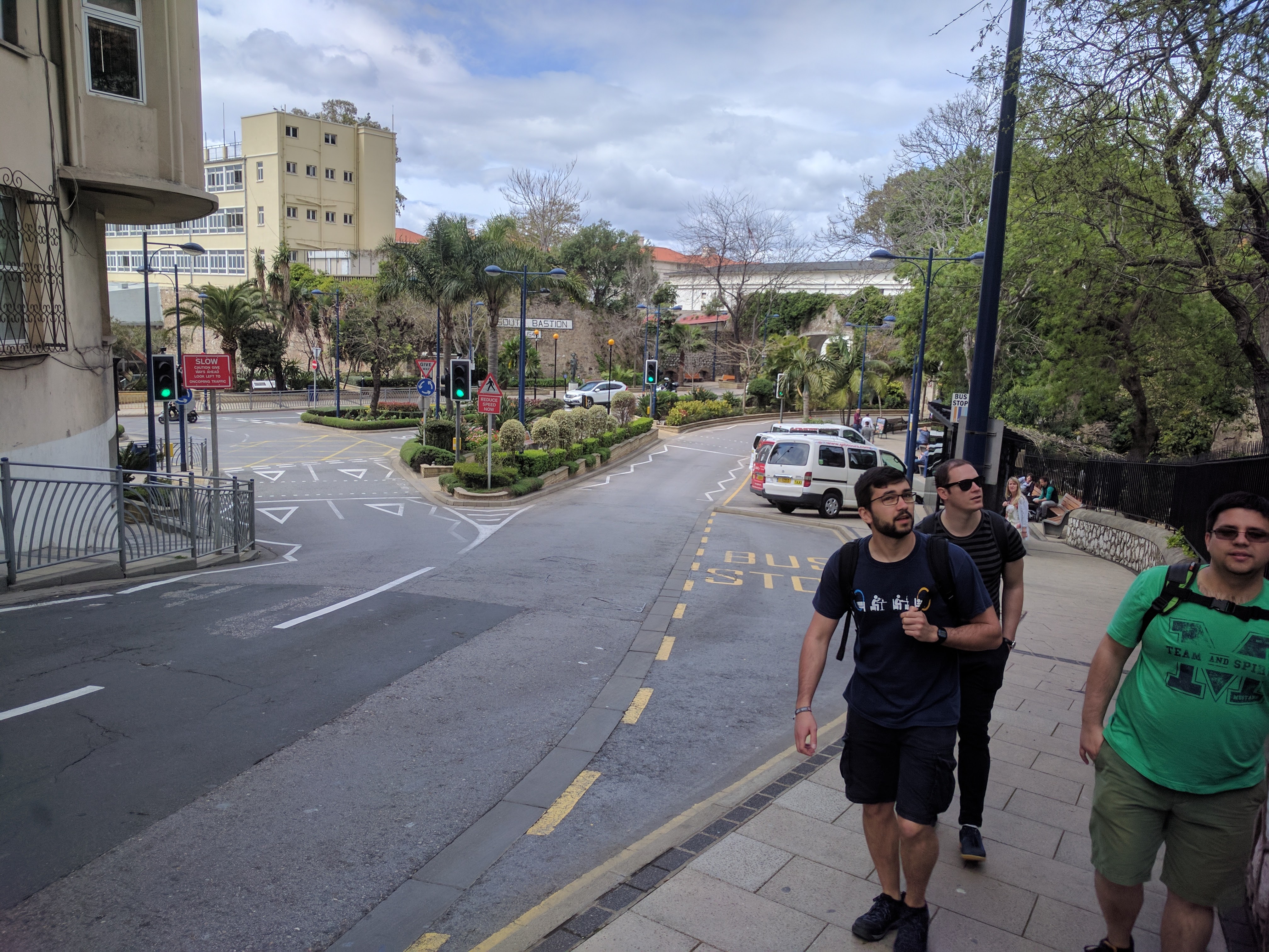 Az idő még kicsit hűvös volt, de úgy éreztük jó döntés a rövidnadrág. A biztonság kedvéért pulóvert, esetleg bőrdzsekit azért vittünk magunkkal, és megindultunk a Gibraltár táblák felé, természetesen gyalog, hiszen pont egy köpésre volt a határ.