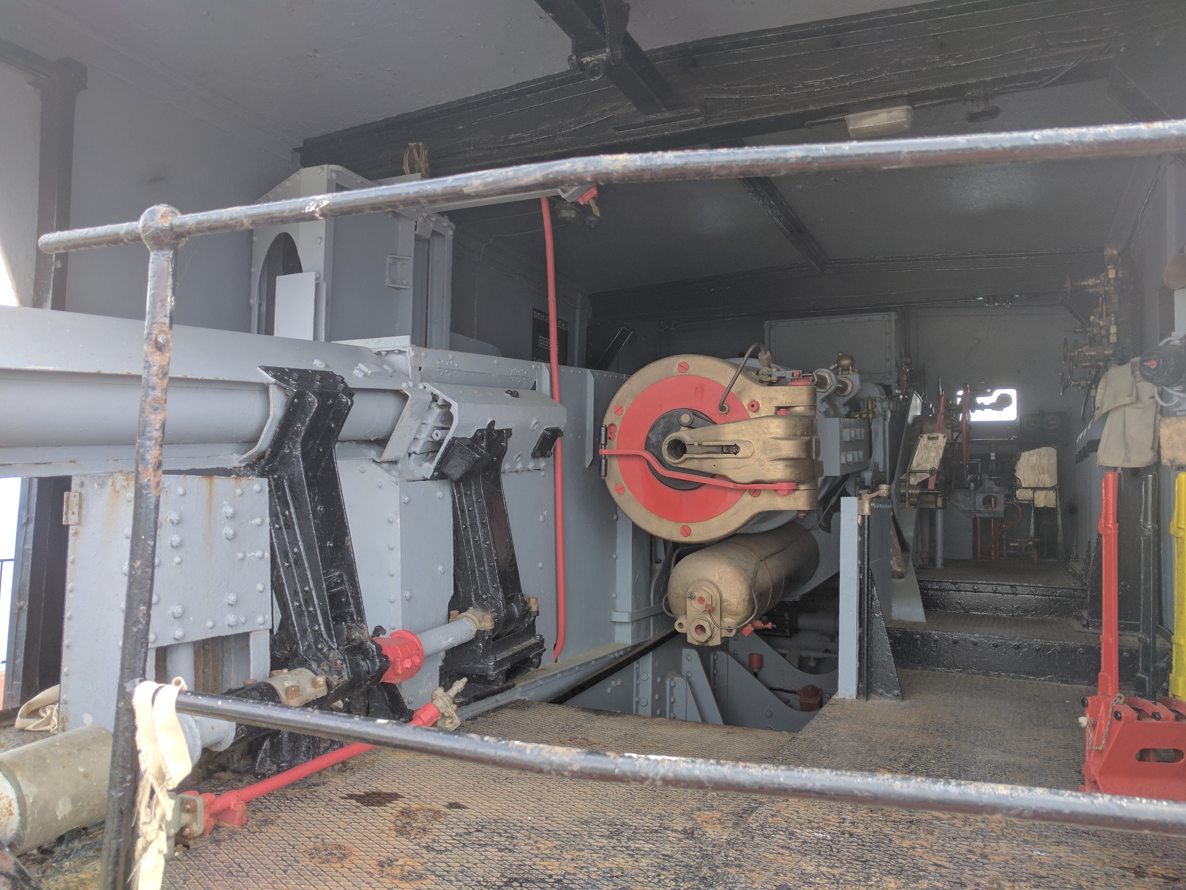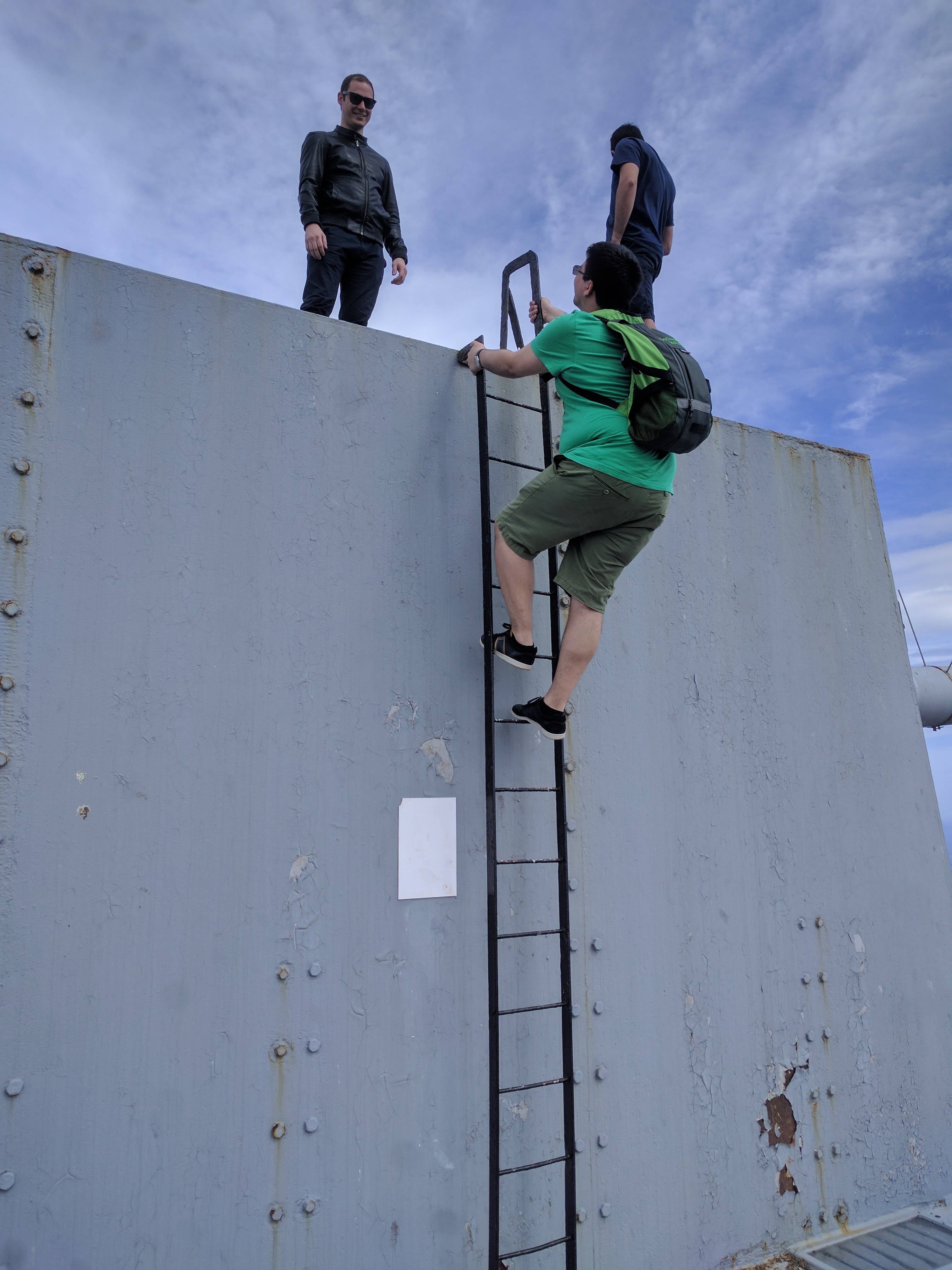 Nyilván felmásztunk az ágyú tetejére, a szélére hegesztett rozsdás rozoga létrán. Elég félelmetes volt, és csak lefelé vettem észre, hogy az a nagy hófehér tábla, a létra mellé ragasztva valószínűleg fénykorában pont ezt volt hivatott megtiltani, csak hát a napfény erősebb volt.