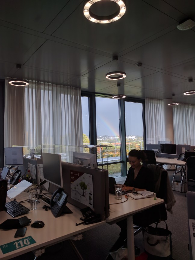 Még valami, ami tök furi az irodában. Gondolom megvan mindenkinek, amikor megvetően leszólják az embert, hogy “mi vaa’ barlangba’ laksz?! há’ zárd be az ajtót!”. Ha más nem, valami frusztrált általános iskolás tanárnénitől. Legalábbis bennem ez eléggé megragadt, úgyhogy lelkesen zárogatom is az ajtókat magam mögött. Illetve zárogatnám. Meg lennék illedelmes, és nyitnám ki másoknak. De itt minden ajtó önműködő. Én vagyok a barlangban nevelkedett vadkeleti tuskó. Itt meg azért kapom a megvető pillantásokat, hogy mit rángatom az ajtót, mindjárt kinyílik magától. És ne nézzetek hülyének ti sem, nem a sinen szétcsúszó üvegajtókról van szó, hanem rendes ki-be nyíló verziókról. Budapesten asszem az árkádnak van ilyen ajtaja. Mármint, ami kifelé nyílik magától. Na itt kb mind ilyen. Kicsi is, nagy is.