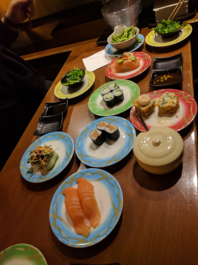 Később elmentünk sálat venni, mert Johanna otthonhagyta, és fázott. Two hours later, a fél mangóval a kezében közölte, hogy végzett, és nem voltak jó sálak, úgyhogy megvett minden mást. A nap zárásaként pedig elmentünk egy sushi bárba. Ez a futószalagos, all you can eat buli, nagyon jó volt. 25 euró/fő.