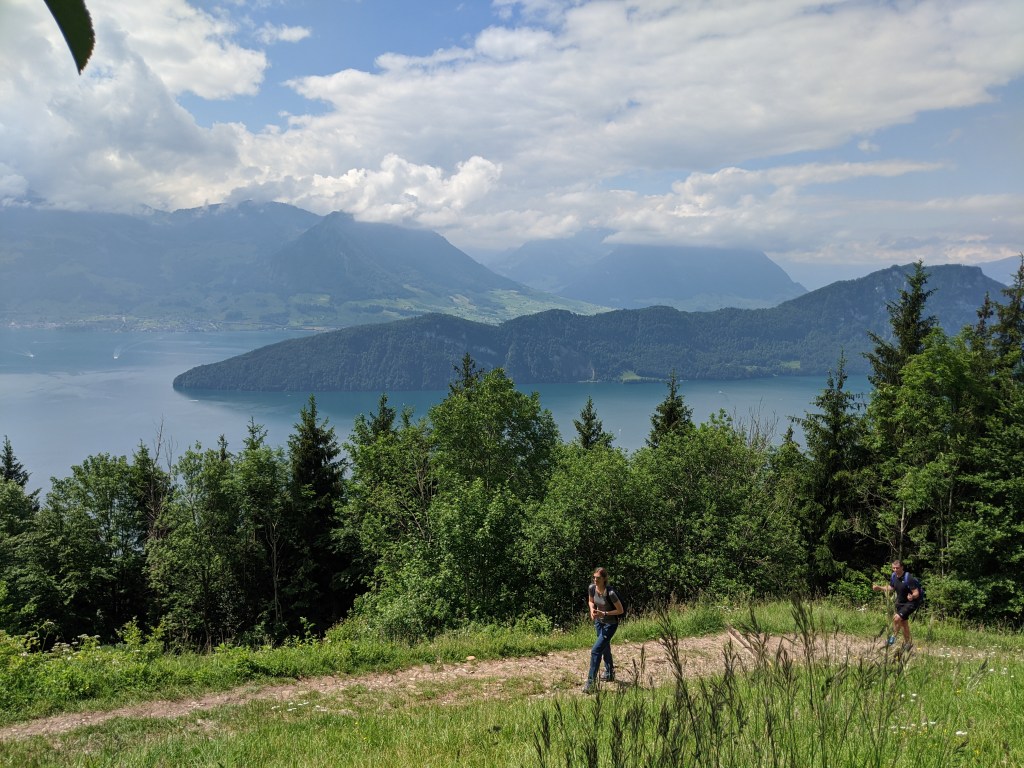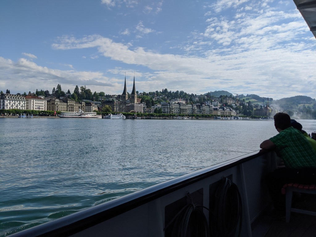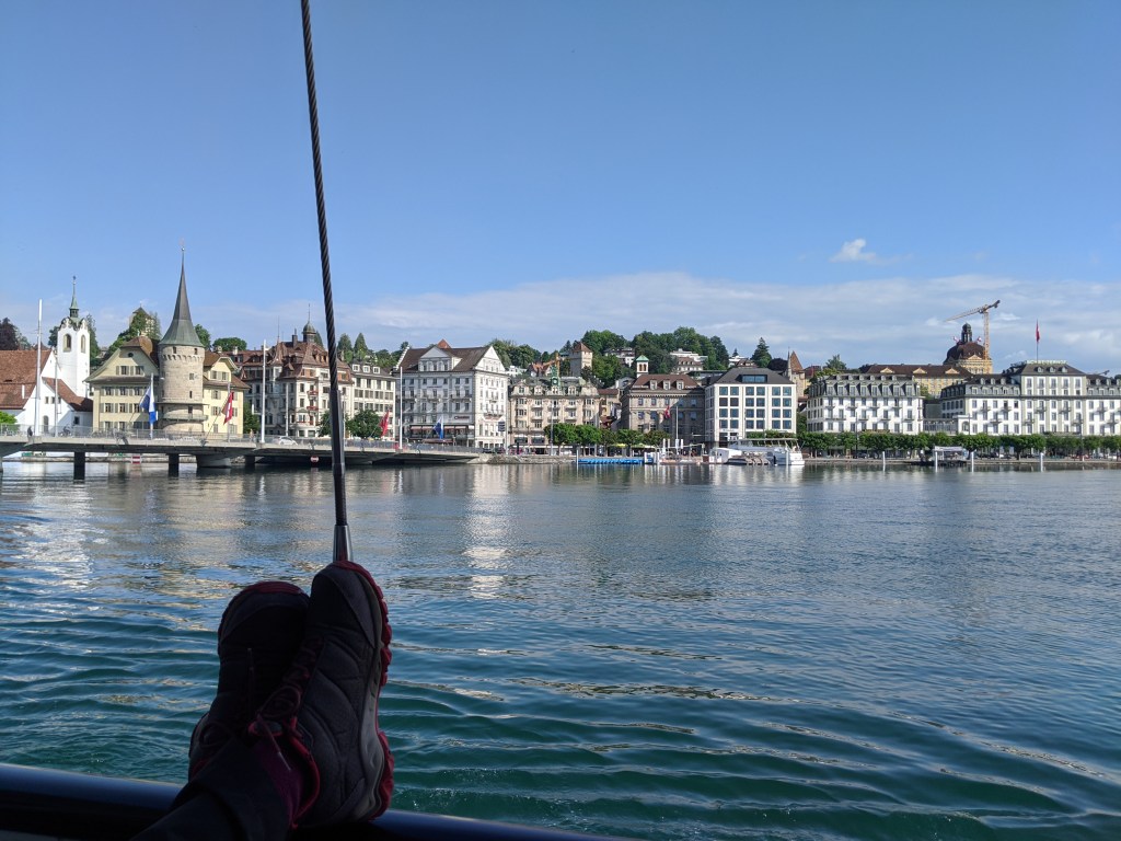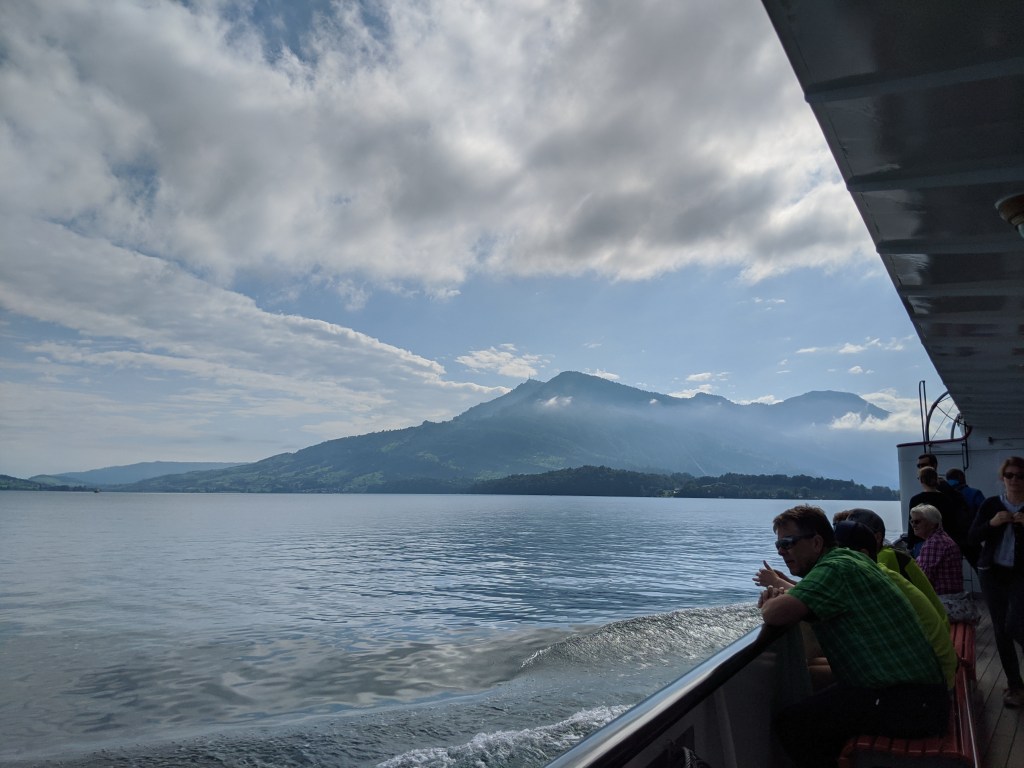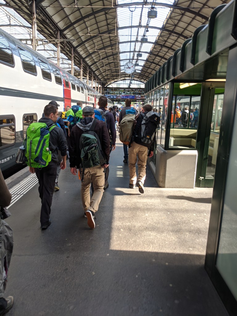 Szombat reggel 6:30-kor keltem. Először kicsit megijedtem, mert esett az eső, de az időjós továbbra is azt állította, hogy Luzernben jó idő van, szóval egy gyors reggeli után felöltöztem és elindultam az állomásra. Ott találkoztam Andrással, Eszterrel és Viktorral. A 8:04-es vonattal indultunk Luzernbe, ahol mindenki, aki leszállt a vonatról túracuccban volt, legalább 300 ember.