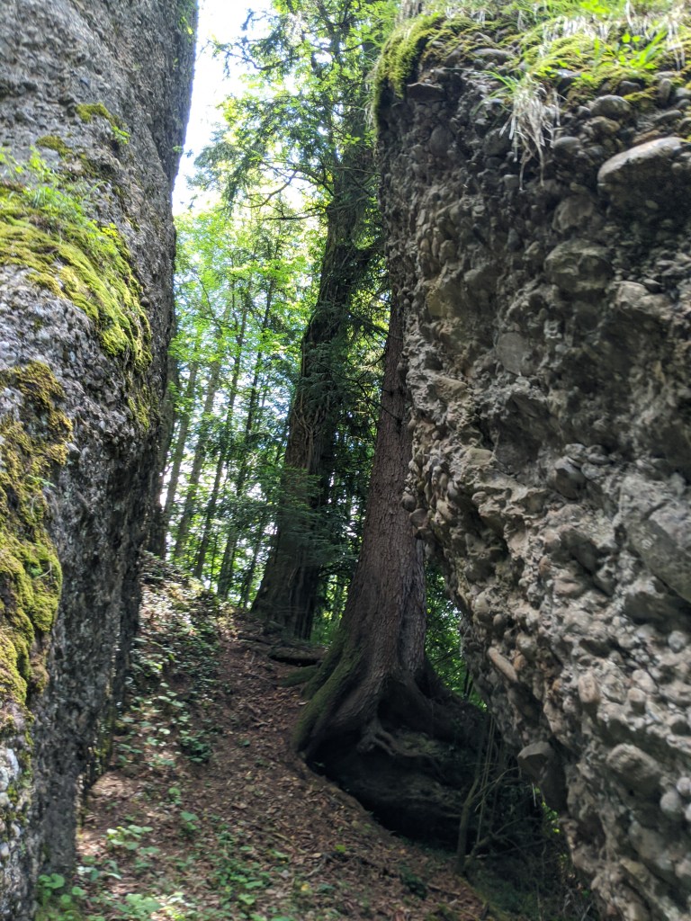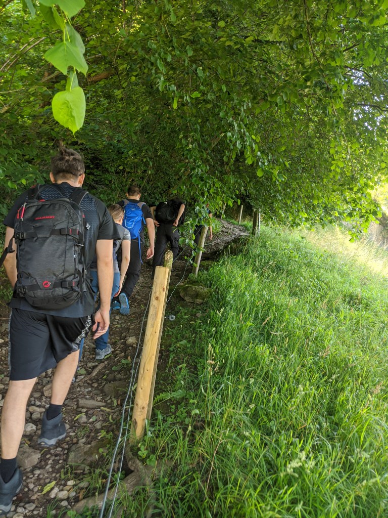 A legkeményebb szakasz a végére maradt. Korábban is volt egy rész, ahol úgy éreztem legalább a tüdőmig kell emelgetnem a térdemet lépcsőzés közben, úgy, hogy némelyik kirohadt lépcsőfok helyett csak kis vas csonkok álltak ki a földből, közben pedig a fejemet is le kellett hajtanom, mert ott voltak a fák, és nagyon örültem, mikor vége volt, hogy vége lett. A végén ránézésre semmi extra nem volt, csak egy jó konstans meredek szakasz. Fél órán át ~20 fokos emelkedő. Aztán megérkeztünk Kaltbadhoz.
