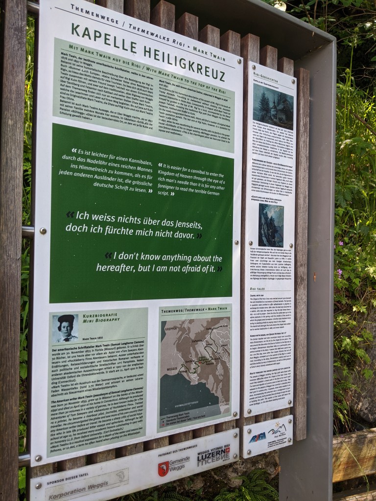 Beírtam hát a keresőbe, hogy túraútvonalak Zürich körül, és a város honlapján találtam is párat. Ráírtam pár ismerősömre, aztán Viktor is bedobott párat a kalapba, és végül meg is lett a match: a Mark Twain trail a Rigin. A meteoswiss szerint 2 hét eső után pénteken végre kisüt a nap, és a jó idő tart egészen szombat délutánig. Kiváló, gondoltuk, akkor lesz ideje a sárnak pénteken felszáradni, szombaton pedig kora reggel elindulunk, hogy még a vihar előtt leérjünk a hegyről.